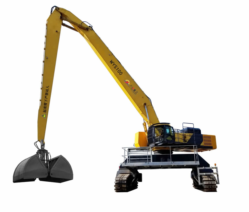八達重工WYS系列液壓履帶式抓料機,可配備柴油機驅(qū)動、電力驅(qū)動或油電混合的“雙動力”驅(qū)動系統(tǒng),質(zhì)量可靠、性能優(yōu)越、一機多用。