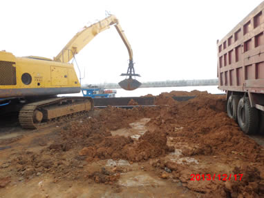 在江蘇某碼頭貨場,八達重工為其專門設計了抓斗退料裝置,解決了該碼頭大量運輸?shù)逆囃烈蛘承蕴蟾街谧ザ飞希灰椎袈涠绊懷b卸速度的問題,使鎳土卸船效率較老設備提高了好幾倍,贏得了客戶贊譽。