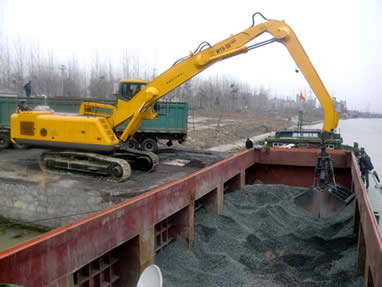 雙動力全液壓輪式、履帶式抓料機(通過配置不同抓具,可實現(xiàn)多種作業(yè)功能,一機多用)可對廢鋼、礦石、鐵粉、煤碳等小范圍、大批量的泡、松、散、扯、亂類物料進(jìn)行快速裝卸、堆垛、喂料作業(yè),憑借安全環(huán)保、節(jié)能省錢的顯著優(yōu)勢,與現(xiàn)代眾多港口集團(tuán)“低碳高效”的港口方針相得益彰,迅速占領(lǐng)各大港口碼頭市場,并擔(dān)當(dāng)作業(yè)主力。