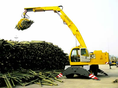 適用工況:主要適用于造紙、人造板、林木業(yè)、生物發(fā)電、棉麻行業(yè)對(duì)木材、散草、秸桿、棉麻等泡松原料的裝卸、堆垛、拆垛作業(yè)。