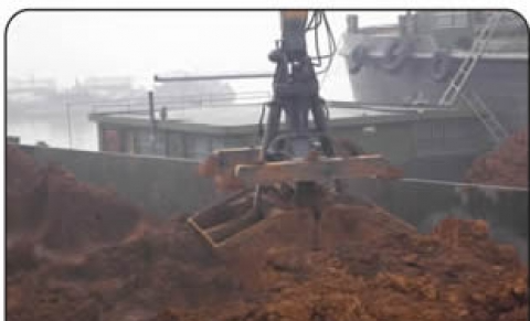 Red clay nickel ore oil electric double drive and double power grab is started at the port and wharf